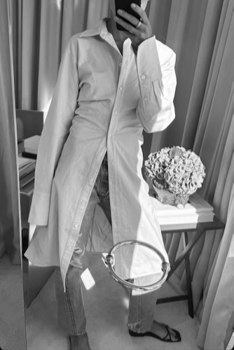 Personally, this was the summer of the shirt dress. I look for a breathable fabrication that hits at the ankles. My favorites are from Cos, but there are great high-end and low-end options. Thankfully, Elin Kling shows us how to transition the shirt dress into fall with a pair of jeans.